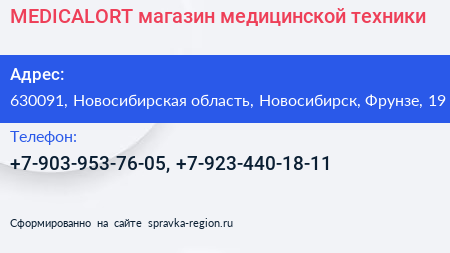 MEDICALORT, магазин медицинской техники по адресу 630091, Новосибирская область, Новосибирск, Фрунзе, 19 в дальнейшем Организация, размещена в следующих категориях: