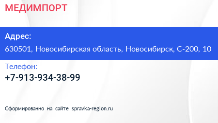 МЕДИМПОРТ по адресу 630501, Новосибирская область, Новосибирск, С-200, 10 в дальнейшем Организация, размещена в следующих категориях: