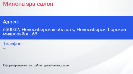 Милена spa, салон по адресу 630032, Новосибирская область, Новосибирск, Горский микрорайон, 69 в дальнейшем Организация, размещена в следующих категориях: