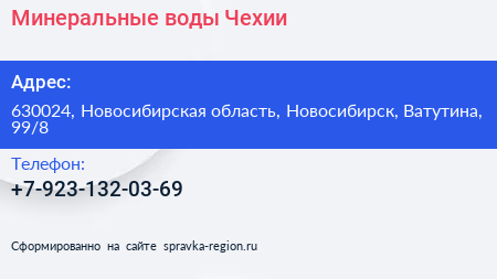 Минеральные воды Чехии по адресу 630024, Новосибирская область, Новосибирск, Ватутина, 99/8 в дальнейшем Организация, размещена в следующих категориях: