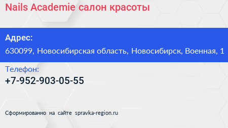 Nails Academie, салон красоты по адресу 630099, Новосибирская область, Новосибирск, Военная, 1 в дальнейшем Организация, размещена в следующих категориях: