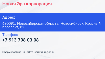 Новая Эра, корпорация по адресу 630091, Новосибирская область, Новосибирск, Красный проспект, 82 в дальнейшем Организация, размещена в следующих категориях: