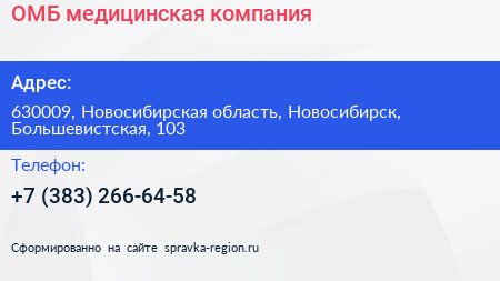 ОМБ, медицинская компания по адресу 630009, Новосибирская область, Новосибирск, Большевистская, 103 в дальнейшем Организация, размещена в следующих категориях: