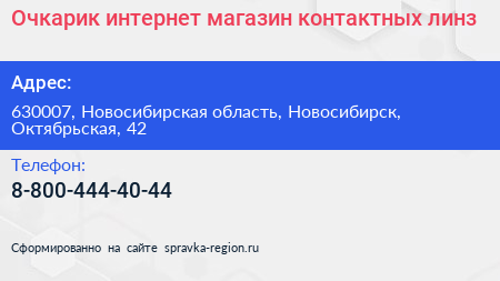 Очкарик, интернет-магазин контактных линз по адресу 630007, Новосибирская область, Новосибирск, Октябрьская, 42 в дальнейшем Организация, размещена в следующих категориях:
