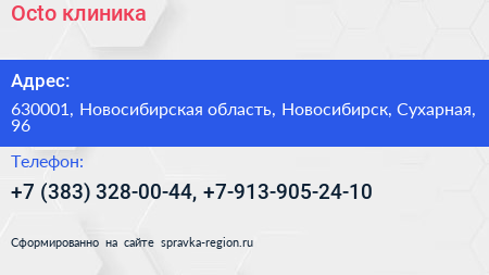 Octo, клиника по адресу 630001, Новосибирская область, Новосибирск, Сухарная, 96 в дальнейшем Организация, размещена в следующих категориях:
