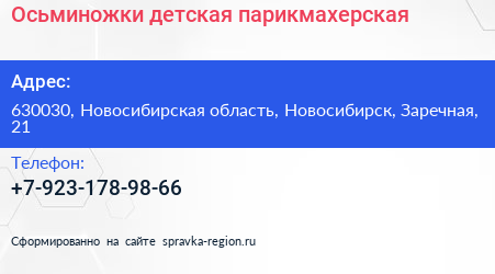 Осьминожки, детская парикмахерская по адресу 630030, Новосибирская область, Новосибирск, Заречная, 21 в дальнейшем Организация, размещена в следующих категориях: