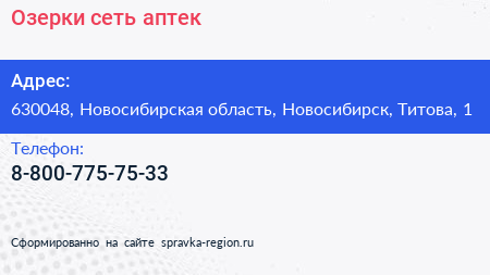Озерки, сеть аптек по адресу 630048, Новосибирская область, Новосибирск, Титова, 1 в дальнейшем Организация, размещена в следующих категориях:
