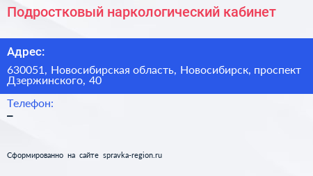Подростковый наркологический кабинет по адресу 630051, Новосибирская область, Новосибирск, проспект Дзержинского, 40 в дальнейшем Организация, размещена в следующих категориях: