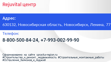 Rejuvital, центр по адресу 630132, Новосибирская область, Новосибирск, Ленина, 77 в дальнейшем Организация, размещена в следующих категориях: