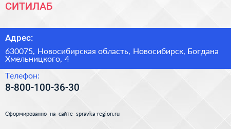СИТИЛАБ по адресу 630075, Новосибирская область, Новосибирск, Богдана Хмельницкого, 4 в дальнейшем Организация, размещена в следующих категориях: