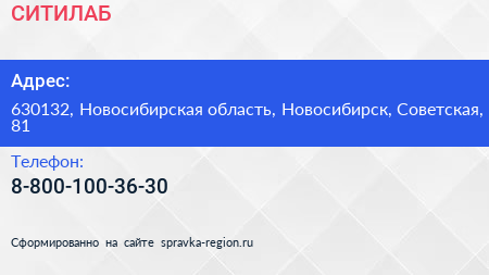 СИТИЛАБ по адресу 630132, Новосибирская область, Новосибирск, Советская, 81 в дальнейшем Организация, размещена в следующих категориях: