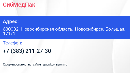 СибМедПак по адресу 630032, Новосибирская область, Новосибирск, Большая, 171/1 в дальнейшем Организация, размещена в следующих категориях: