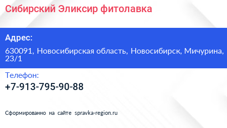 Сибирский Эликсир, фитолавка по адресу 630091, Новосибирская область, Новосибирск, Мичурина, 23/1 в дальнейшем Организация, размещена в следующих категориях: