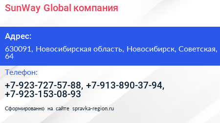 SunWay Global, компания по адресу 630091, Новосибирская область, Новосибирск, Советская, 64 в дальнейшем Организация, размещена в следующих категориях: