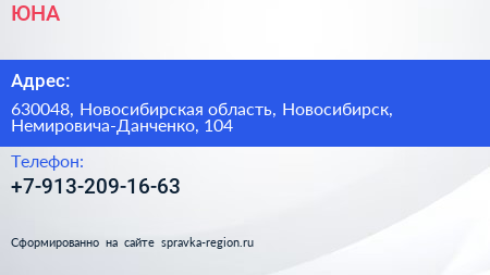 ЮНА по адресу 630048, Новосибирская область, Новосибирск, Немировича-Данченко, 104 в дальнейшем Организация, размещена в следующих категориях: