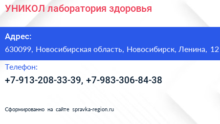 УНИКОЛ, лаборатория здоровья по адресу 630099, Новосибирская область, Новосибирск, Ленина, 12 в дальнейшем Организация, размещена в следующих категориях: