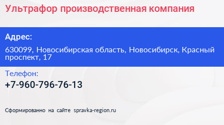 Ультрафор, производственная компания по адресу 630099, Новосибирская область, Новосибирск, Красный проспект, 17 в дальнейшем Организация, размещена в следующих категориях: