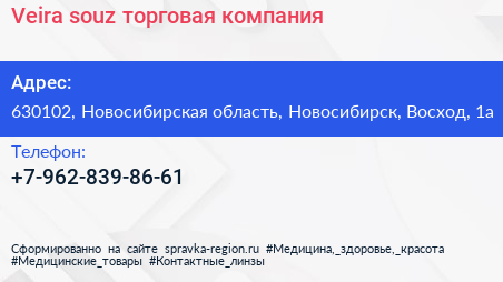 Veira-souz, торговая компания по адресу 630102, Новосибирская область, Новосибирск, Восход, 1а в дальнейшем Организация, размещена в следующих категориях: