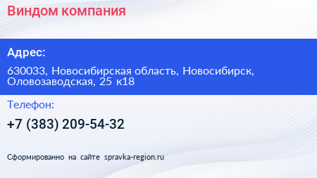 Виндом, компания по адресу 630033, Новосибирская область, Новосибирск, Оловозаводская, 25 к18 в дальнейшем Организация, размещена в следующих категориях: