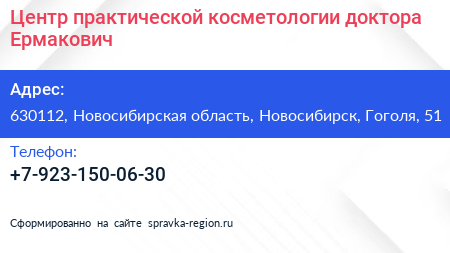 Центр практической косметологии доктора Ермакович по адресу 630112, Новосибирская область, Новосибирск, Гоголя, 51 в дальнейшем Организация, размещена в следующих категориях: