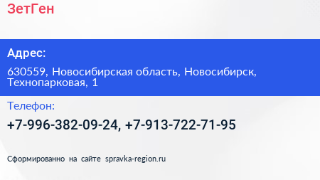 ЗетГен по адресу 630559, Новосибирская область, Новосибирск, Технопарковая, 1 в дальнейшем Организация, размещена в следующих категориях:
