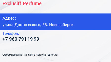 Exclusiff Perfume по адресу улица Достоевского, 58, Новосибирск в дальнейшем Организация, размещена в следующих категориях: