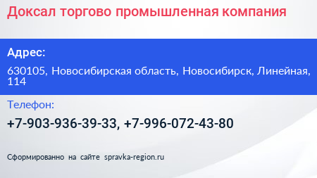 Доксал, торгово-промышленная компания по адресу 630105, Новосибирская область, Новосибирск, Линейная, 114 в дальнейшем Организация, размещена в следующих категориях: