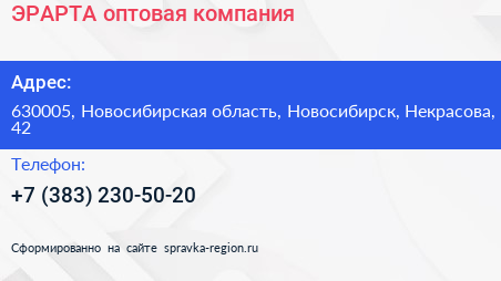 ЭРАРТА, оптовая компания по адресу 630005, Новосибирская область, Новосибирск, Некрасова, 42 в дальнейшем Организация, размещена в следующих категориях: