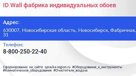 ID Wall, фабрика индивидуальных обоев по адресу 630007, Новосибирская область, Новосибирск, Фабричная, 31 в дальнейшем Организация, размещена в следующих категориях: