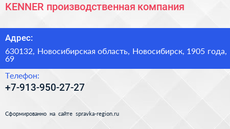 KENNER, производственная компания по адресу 630132, Новосибирская область, Новосибирск, 1905 года, 69 в дальнейшем Организация, размещена в следующих категориях:
