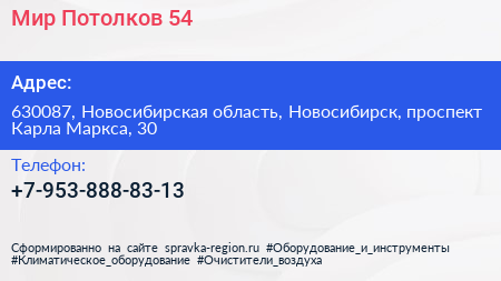 Мир Потолков 54 по адресу 630087, Новосибирская область, Новосибирск, проспект Карла Маркса, 30 в дальнейшем Организация, размещена в следующих категориях: