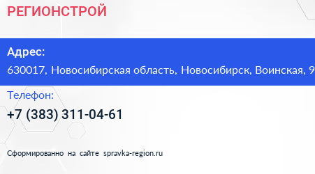 РЕГИОНСТРОЙ по адресу 630017, Новосибирская область, Новосибирск, Воинская, 9 в дальнейшем Организация, размещена в следующих категориях: