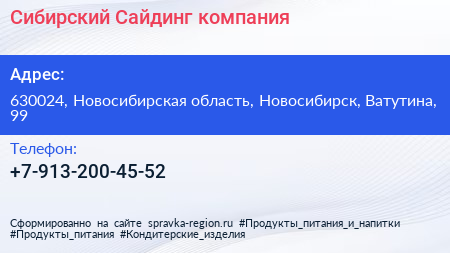 Сибирский Сайдинг, компания по адресу 630024, Новосибирская область, Новосибирск, Ватутина, 99 в дальнейшем Организация, размещена в следующих категориях: