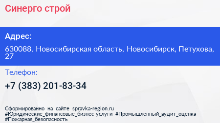 Синерго-строй по адресу 630088, Новосибирская область, Новосибирск, Петухова, 27 в дальнейшем Организация, размещена в следующих категориях: