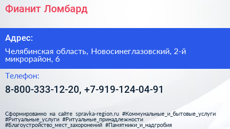 Фианит-Ломбард по адресу Челябинская область, Новосинеглазовский, 2-й микрорайон, 6 в дальнейшем Организация, размещена в следующих категориях: