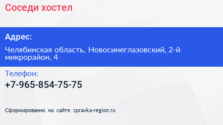 Соседи, хостел по адресу Челябинская область, Новосинеглазовский, 2-й микрорайон, 4 в дальнейшем Организация, размещена в следующих категориях: