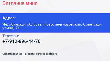 Ситилинк мини по адресу Челябинская область, Новосинеглазовский, Советская улица, 2а в дальнейшем Организация, размещена в следующих категориях: