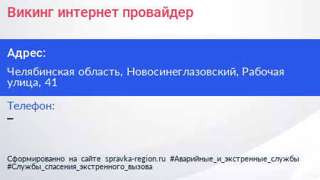 Викинг, интернет-провайдер по адресу Челябинская область, Новосинеглазовский, Рабочая улица, 41 в дальнейшем Организация, размещена в следующих категориях: