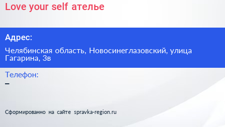 Love your self, ателье по адресу Челябинская область, Новосинеглазовский, улица Гагарина, 3в в дальнейшем Организация, размещена в следующих категориях: