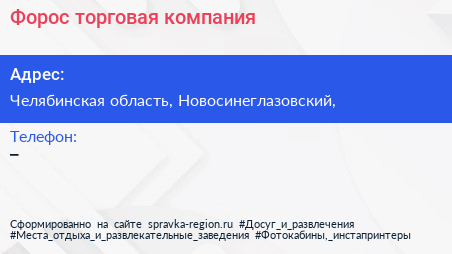 Форос, торговая компания по адресу Челябинская область, Новосинеглазовский, в дальнейшем Организация, размещена в следующих категориях:
