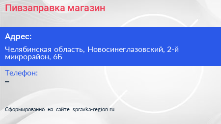 Пивзаправка, магазин по адресу Челябинская область, Новосинеглазовский, 2-й микрорайон, 6Б в дальнейшем Организация, размещена в следующих категориях: