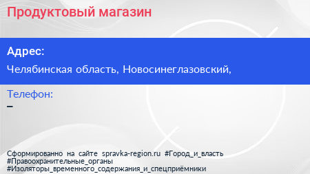 Продуктовый магазин по адресу Челябинская область, Новосинеглазовский, в дальнейшем Организация, размещена в следующих категориях: