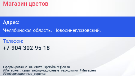 Магазин цветов по адресу Челябинская область, Новосинеглазовский, в дальнейшем Организация, размещена в следующих категориях: