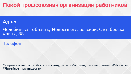 Покой, профсоюзная организация работников по адресу Челябинская область, Новосинеглазовский, Октябрьская улица, 88 в дальнейшем Организация, размещена в следующих категориях: