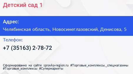 Детский сад №1 по адресу Челябинская область, Новосинеглазовский, Денисова, 5 в дальнейшем Организация, размещена в следующих категориях: