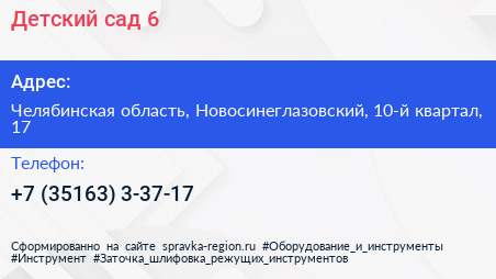 Детский сад №6 по адресу Челябинская область, Новосинеглазовский, 10-й квартал, 17 в дальнейшем Организация, размещена в следующих категориях: