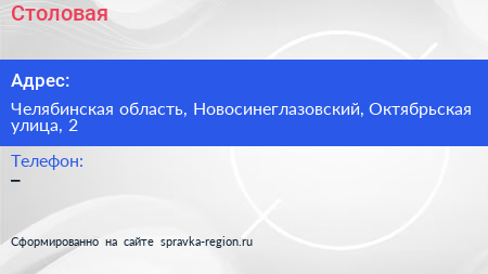 Столовая по адресу Челябинская область, Новосинеглазовский, Октябрьская улица, 2 в дальнейшем Организация, размещена в следующих категориях: