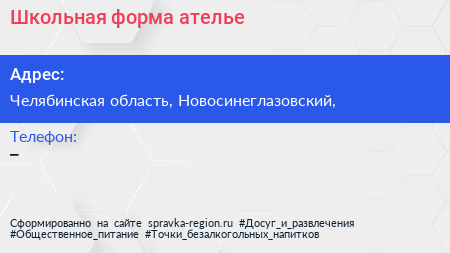 Школьная форма, ателье по адресу Челябинская область, Новосинеглазовский, в дальнейшем Организация, размещена в следующих категориях: