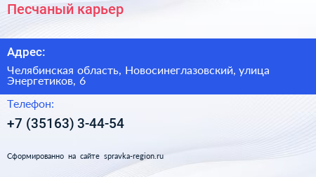 Песчаный карьер по адресу Челябинская область, Новосинеглазовский, улица Энергетиков, 6 в дальнейшем Организация, размещена в следующих категориях: