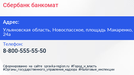 Сбербанк, банкомат по адресу Ульяновская область, Новоспасское, площадь Макаренко, 24а в дальнейшем Организация, размещена в следующих категориях: